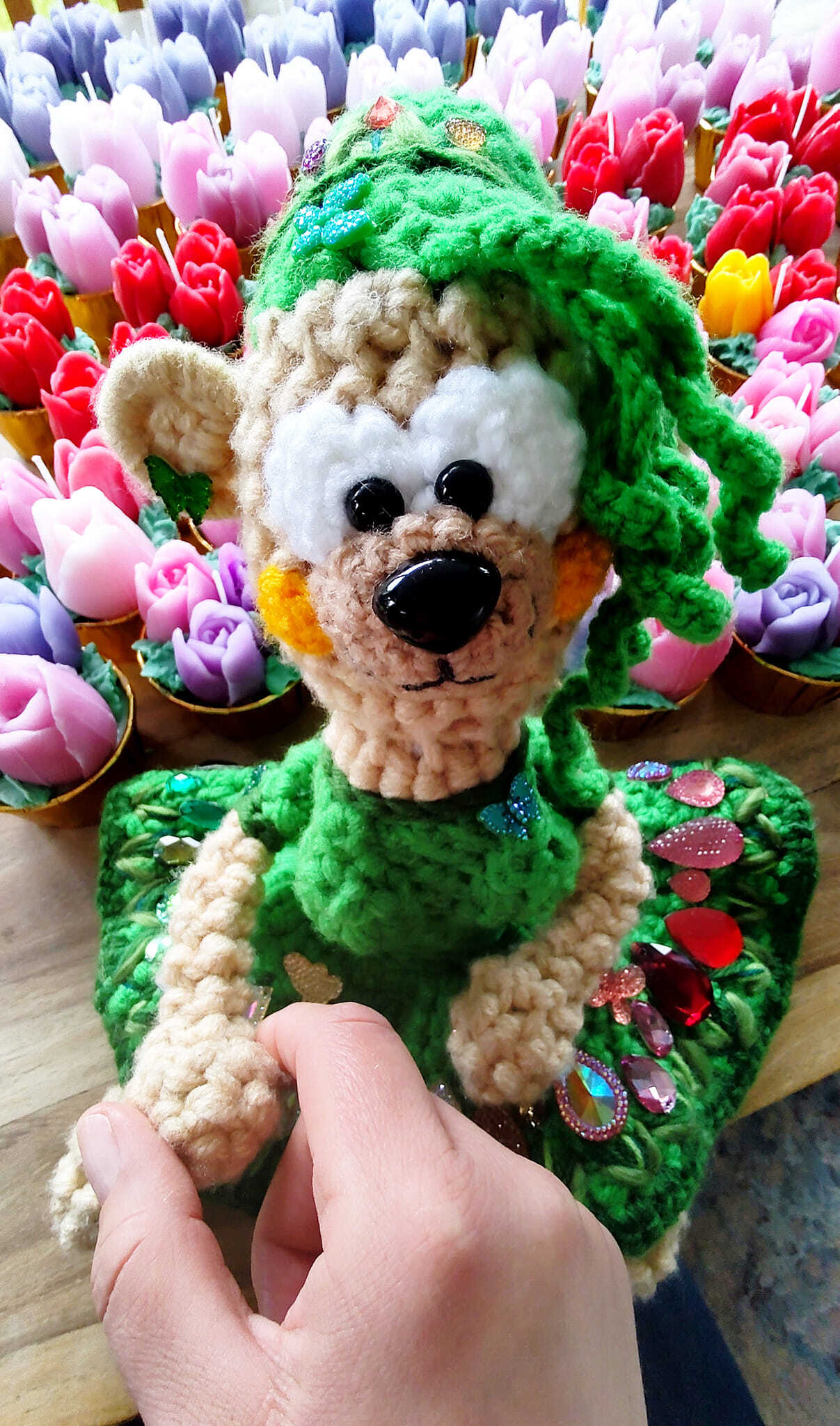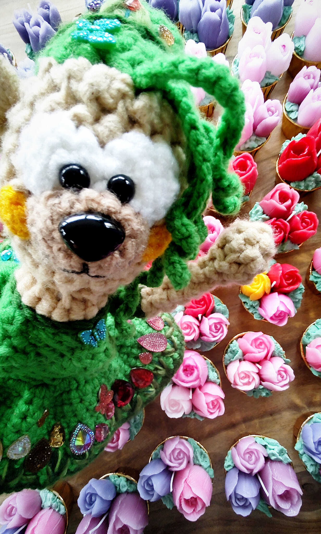 WIOSNA -w Misiowie migocze najróżniejszymi kolorami i błyszczy mocą dodatków -guziki, diamenciki -wszystko co może imitować budzącą się do życia naturę..