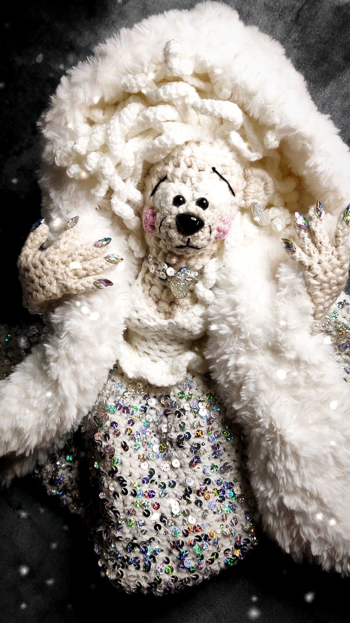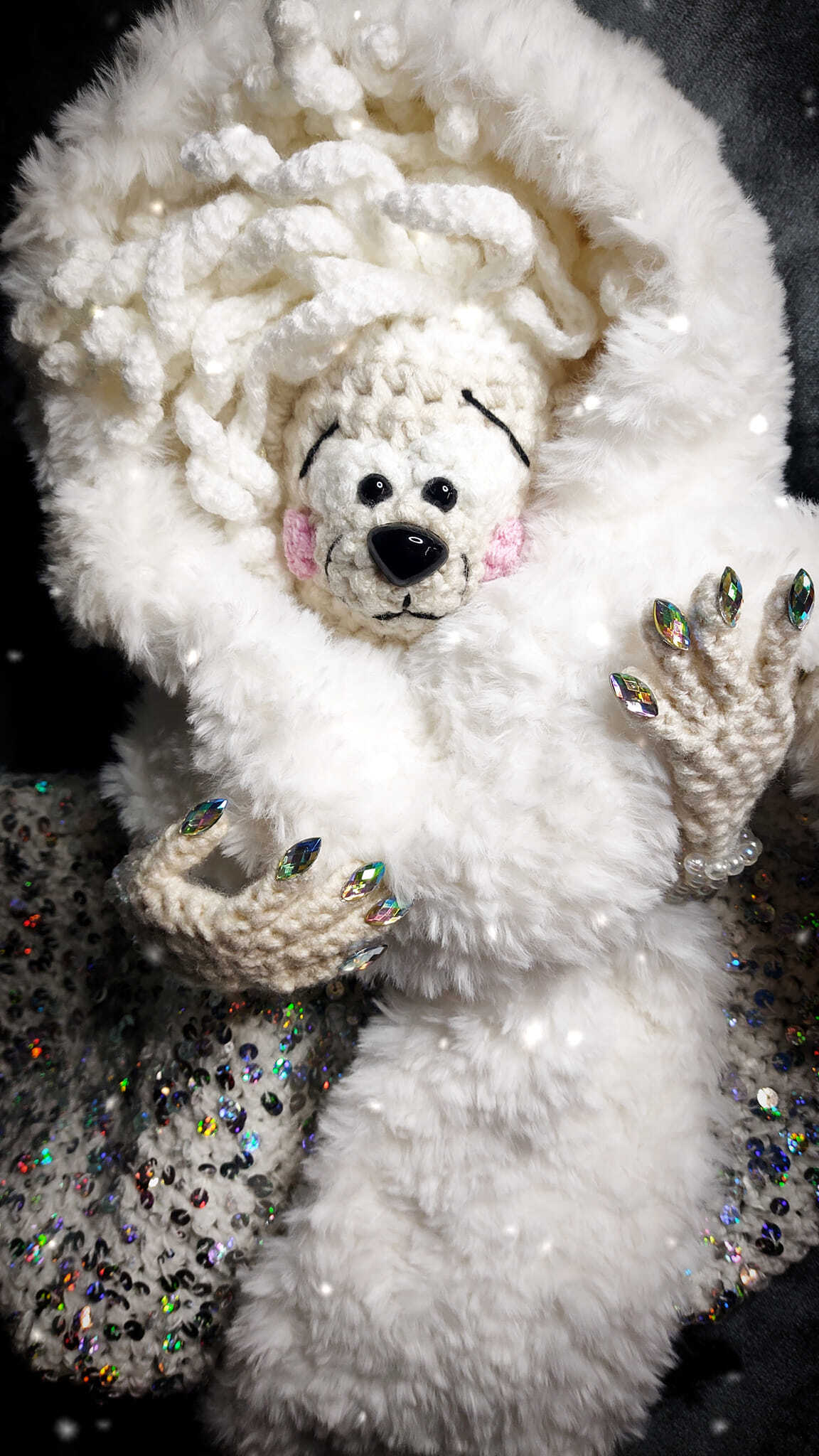 Zwróćcie uwagę na ten puchowy biały szalo-kaptur, no i diamentowy manicure :) no taka rasowa Pani Zima to tylko w Misiowie :)