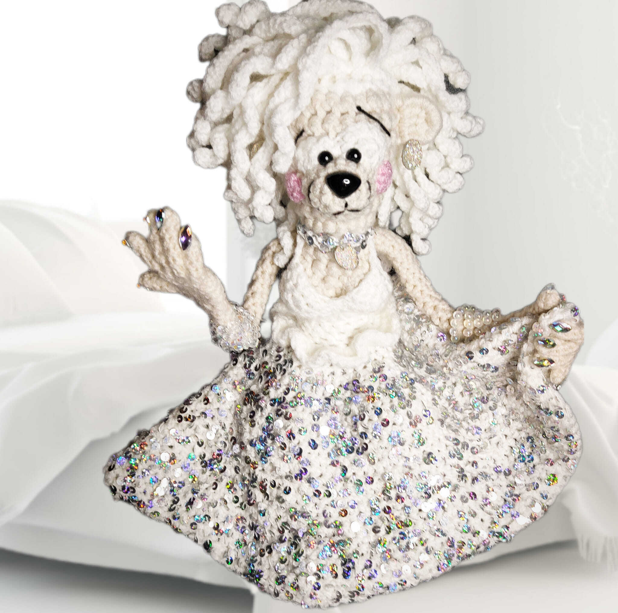 Albo srebrnymi ale! mieniącymi się całą tęczą cekinami!