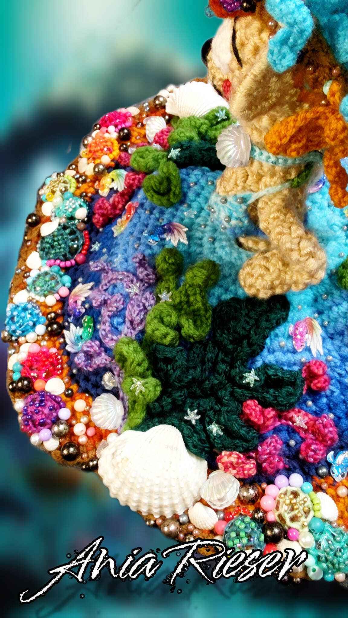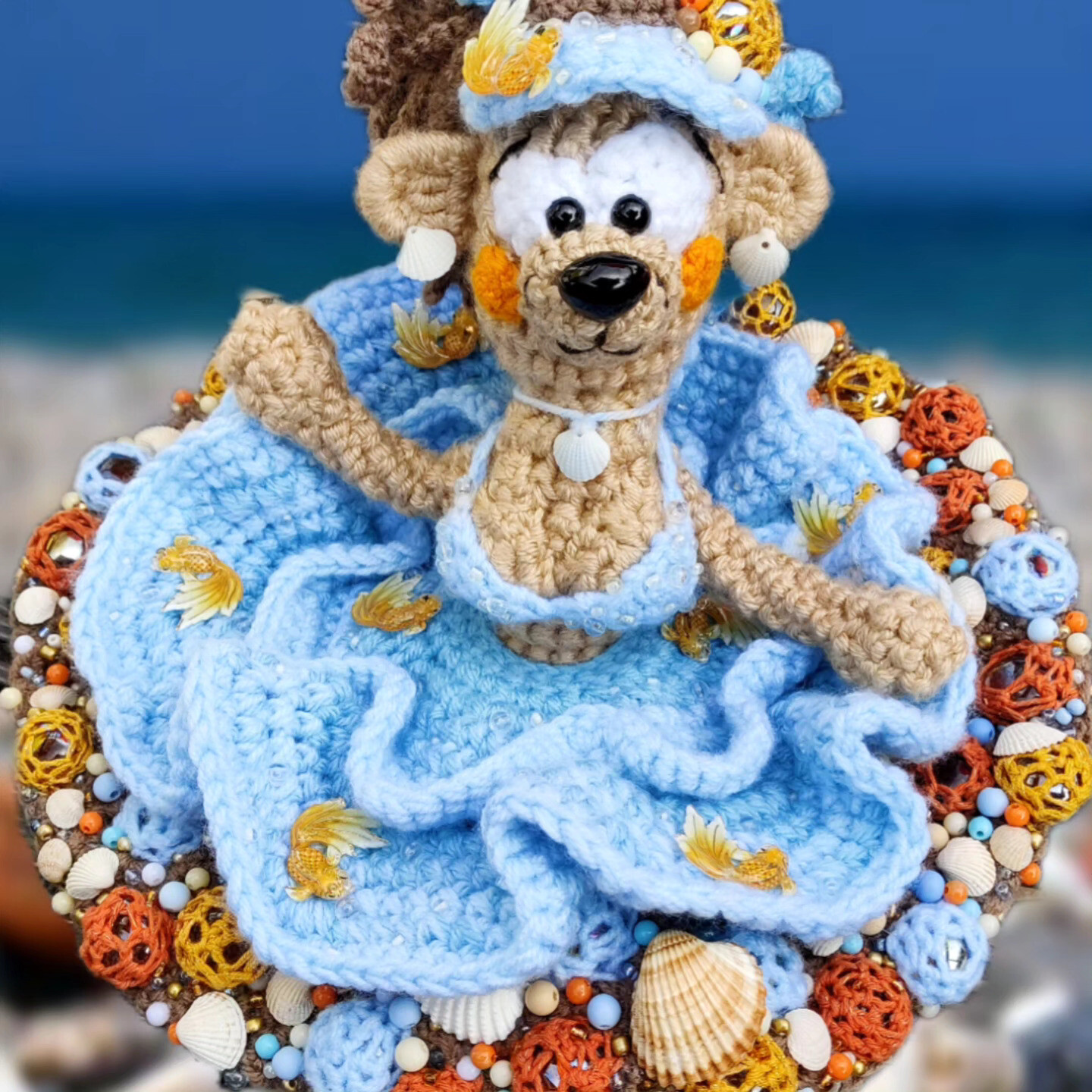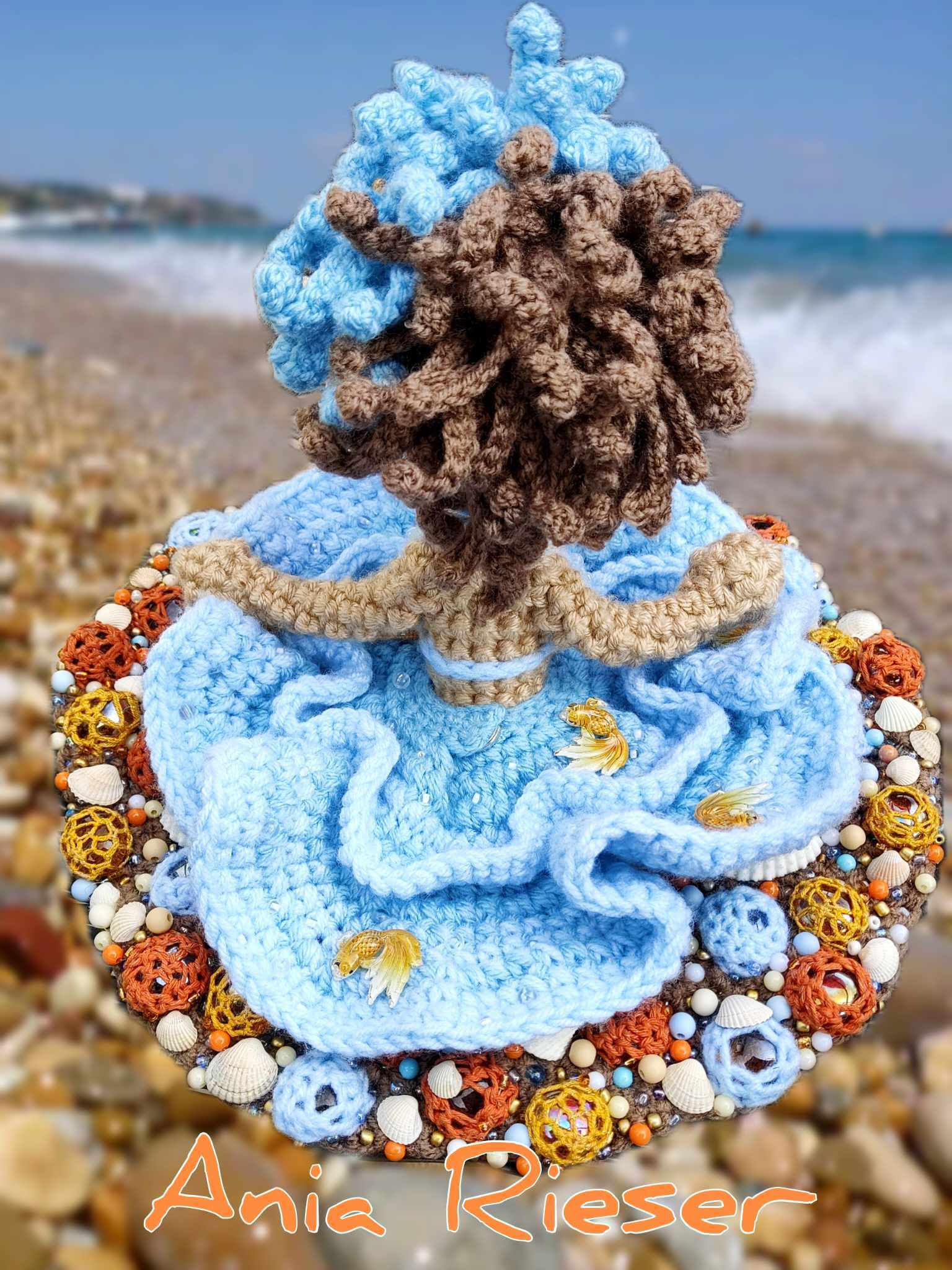 A plaża, czyli dół sukni -w kolorze właśnie nie innym jak piaskowym, z mnóstwem wszytych koralików, szkiełek czy prawdziwych! muszelek.. Pasmanteryjny majstersztyk :)