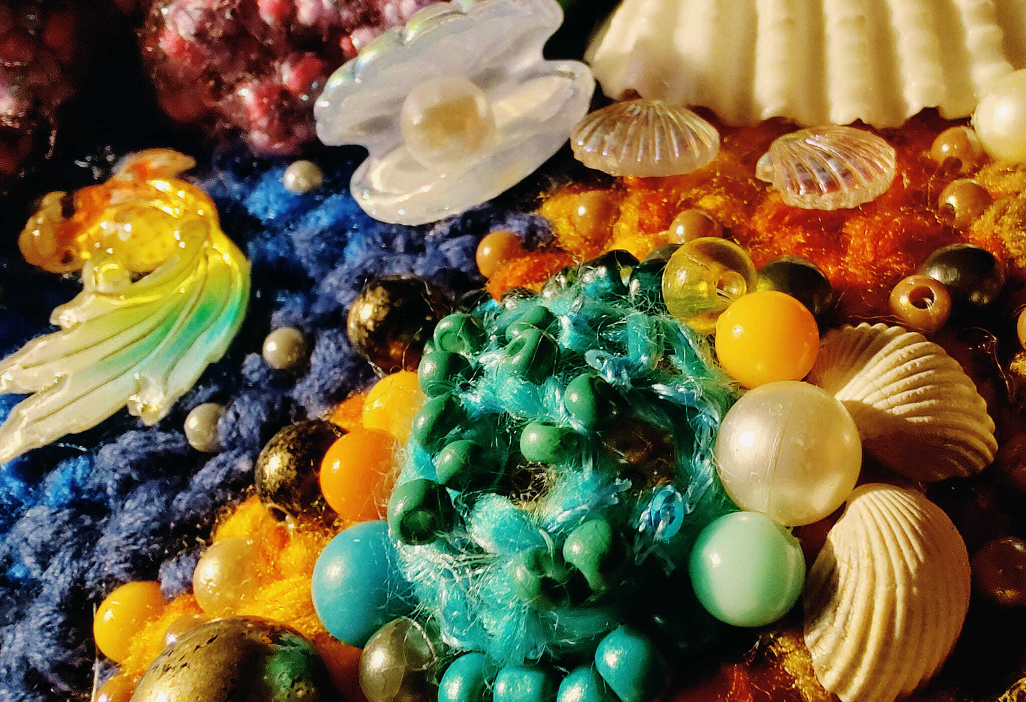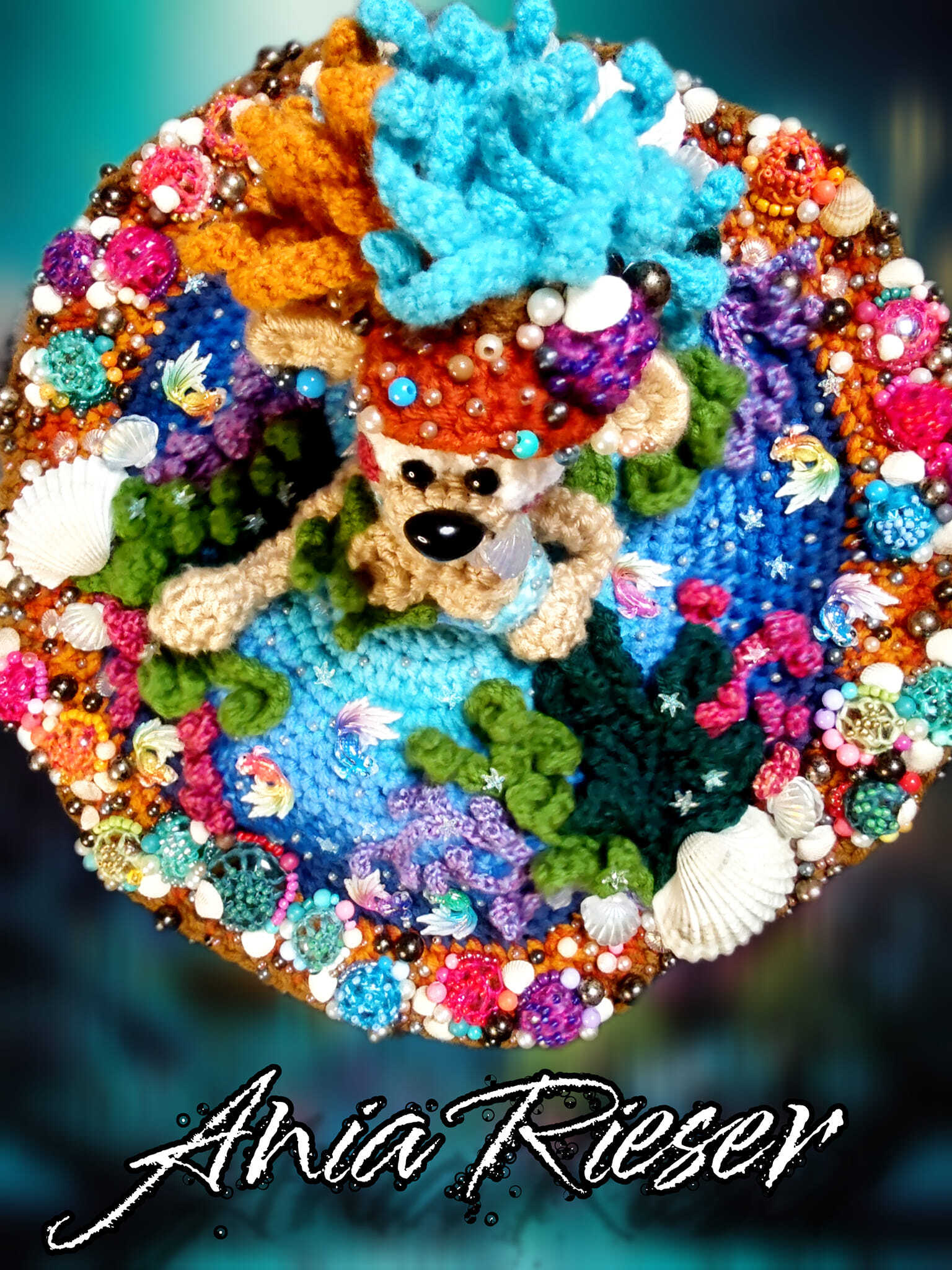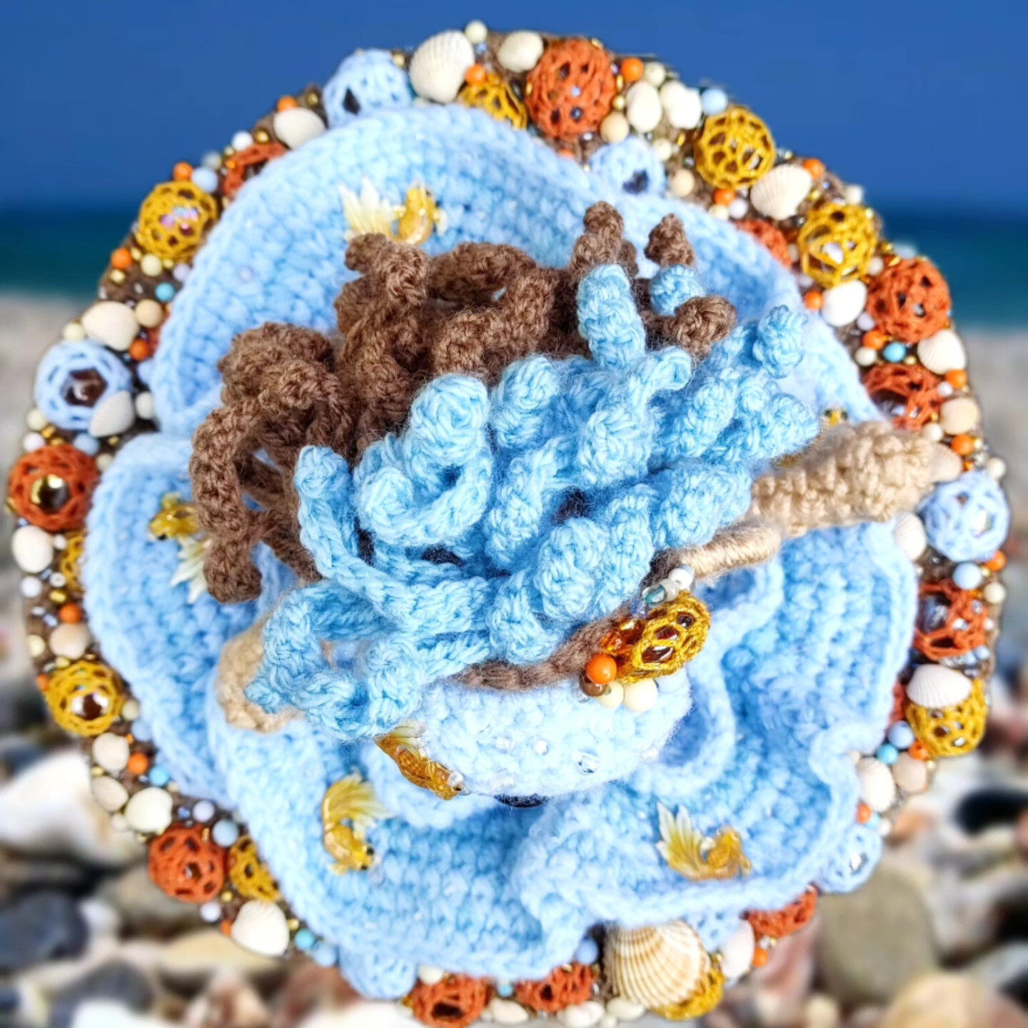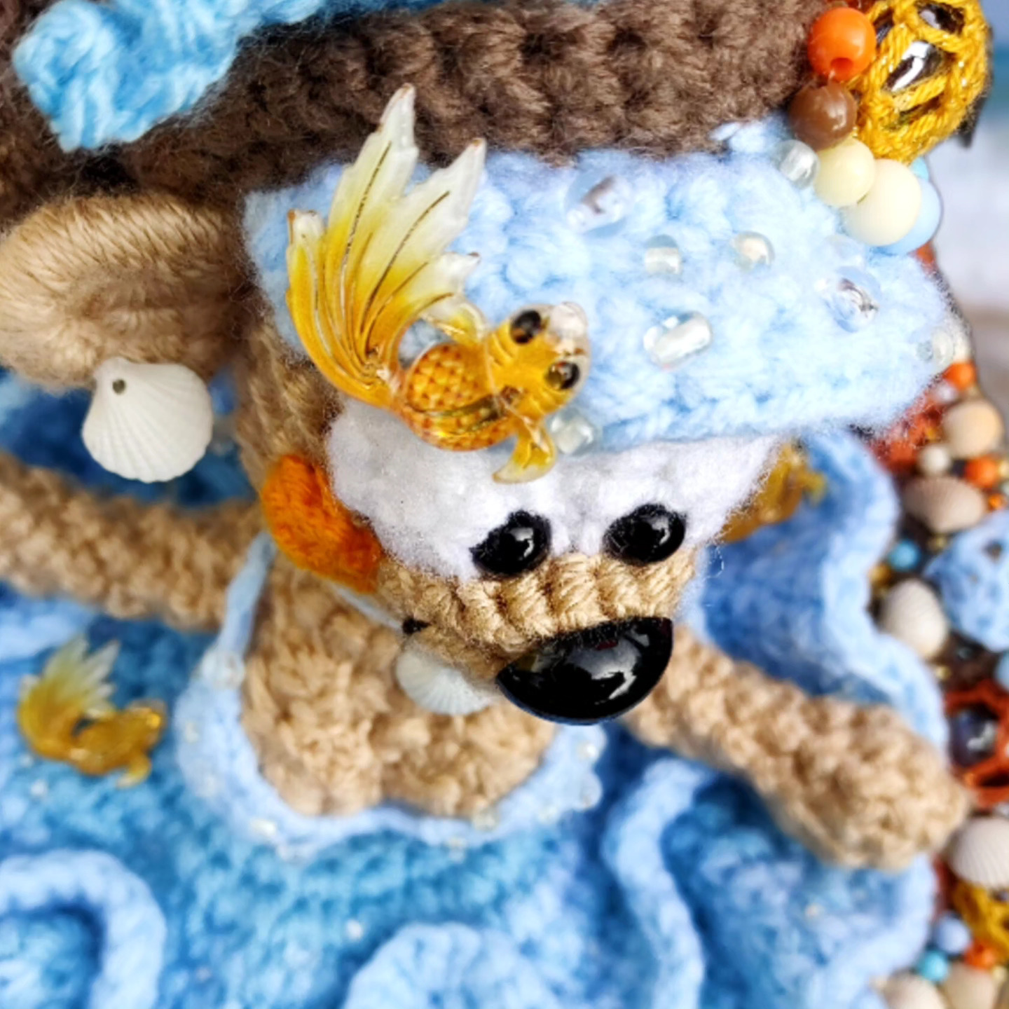 A plaża, czyli dół sukni -w kolorze właśnie nie innym jak piaskowym, z mnóstwem wszytych koralików, szkiełek czy prawdziwych! muszelek.. Pasmanteryjny majstersztyk :)
